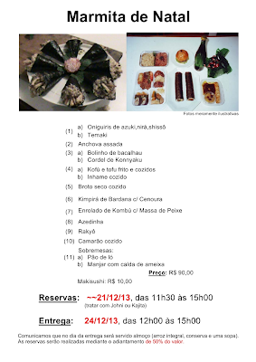 Satori. Os pedidos podem ser feitos no local ou por telefone. Detalhes sobre a marmita podem ser conferidos no cartaz abaixo. Clicando na imagem, você